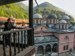 Rila: Lovna-Hütte (1750) – Rilski Ezera-Hütte (2150 m) – Babreka-See – Okoto-See – Razdele (Wegkreuzung “Zwei Glocken” (2600 m) – ab hier die “kleine Variante” zum Rila-Kloster (1200 m)Wie sollte es anders sein: Erst einmal ging´s hoch – und zwar gleich richtig. Rückblickend sah man nun immer wieder in der Ferne die Wetterstation (weiße Kugel) auf dem Cernie Vrah. Doch mit jedem Schritt wurde man mit einer immer grandioser werdenden Aussicht belohnt. Gut zurück verfolgen konnte man dabei die Wanderstrecken der beiden Vortage. (Interessant: Auf diesem Wegabschnitt gibt es so viele Schilder, dass man sich kaum entscheiden kann.) Bereits nach einer knappen Stunde erreicht man die erste Hütte (Rilski Ezera). Diese wird auch von Autos angefahren – wie auch immer sie dorthin gelangen. Ebenso haben wir Maultier-Karavanen mit Gepäck gesehen. Rilski Ezera ist auch ein beliebter Wintersportort. Dass die Hütte zu den modernsten in Bulgarien gehört, ist ihr nicht unbedingt anzumerken. Hier beginnt der alpine Teil der Wanderung, die zu jedem Zeitpunkt „wanderbar“ ist (keine gefährlichen Grate, notwendige Kettenbenutzung etc). Aber das Bergpanorama lässt nun erahnen, was kommen mag. Weiter geht‘s - natürlich bergauf. Die nächste Pause muss man unbedingt nach dem Aufstieg von der Rilski Esera zum Hochplateau machen. Der Wind pfeift kräftig um die Nase, die Seen glitzern in der Sonne, der Blick kann weit schweifen, frei laufende Pferdeherden geben herrliche Fotomotive und wie für uns tanzen hunderte „White brothers“, ein Sekte, die sich alljährlich Mitte August dort trifft, singend in Kreisen durch die atemberaubende Landschaft. Genug ausgeruht – es geht wieder bergan in heftigen Serpentinen zum vorletzten der sieben Seen. Vorbei an einem Wasserfall geht es hinauf zum ersten Pass. Von dort gibt es mehrere Wege – jeder lockt. Doch uns ruft der E4. Also: bergauf zum nächsten Pass. Diesen überquerend verlassen wir den ersten Abschnitt der Tour und winken ein letztes Mal der Wetterstation am Cernie Vrah zu. Auf der nächsten Hochebene lassen wir es uns gut gehen, machen Mittagspause und starten dann durch Richtung Rila-Kloster – dabei verlassen wir den eigentlichen E4, der nun für Normalos zu alpin wird (damit umgeht man, laut Kompass, die anspruchsvollste Strecke in der Hochlage des nördlichen Rila- Gebirges). Von der vom bulgarischen Wanderverein empfohlenen Abstiegsroute wird uns von einem einheimischen Guide sowie einem Schäfer – beide trafen wir vor Ort – abgeraten. Viel Wasser mache diese Strecke zu rutschig. So sei es besser der allgemeinen Markierung zu folgen. Wir tun dies und kommen nach einem heftigen Abstieg (lauffähig) mit grandiosen Ausblicken wohlbehalten direkt am Eingang des Klosters an. In diesem Kloster, dem berühmten Rila-Kloster, (Natio-nalheiligtum aus dem 10. Jh., Bulgariens Touristenobjekt Nr.1)) kann man übernachten. Mit etwas Glück auch ohne Reservierung. Wir haben Glück und erwischen eine Einheit mit zwei Zimmern (einmal fünf Betten und einmal eins mit Waschbecken für 10 Leva pro Person - etwa 5 Euro), moderne Toiletten und Gemeinschaftsduschräume vorhanden, massenhaft Einkehrmöglichkeiten rund ums Kloster (gute Qualität). Bis 23 Uhr muss man in der Anlage sein, dann werden die Klosterpforten verschlossen: Das Kloster öffnet seine Pforten erst wieder am nächsten Tag gegen zehn Uhr für neue Touristen. Das ist ein riesiger Vorteil: Man hat diebeeindruckende Anlage für Fotos und zum Erkunden nahezu für sich. Ab zehn Uhr „bricht die Hölle los“.