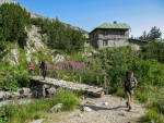 Vihren-Hütte (1950 m) – Todorina-Tor (2700 m) - Demjanica (1800 m)Etwa 14 km, ca. 4 h, herrliche Tour mit fantastischer Aussicht, malerischen Seen und viel Gebirgsgrün, leicht, erfordert aber Trittsicherheit Loslaufend bleiben wir auf dem E4, um dann ab dem Todorina-Tor (2700 m) abzuschwenken zur Hütte Demjanica. Eigentlich führt der E4 direkt von der Vihren-Hütte zur Hütte am Tevnoto-See, die wir uns für den nächsten Tag auserkoren haben. Der eigentliche Weg führt über einen schmalen Grat, der Schwindelfreiheit und Trittsicherheit erfordert. Unser Weg beginnt romantisch hinter der Hütte und führt über eine Holzbrücke (noch vor wenigen Jahren lag hier nur ein Baumstamm) über den Fluss. Wie gewohnt geht es hoch hinauf. Anfangs noch üppig grün, wird es immer steiniger. Kurz vor den Pässen (gut markierte Wanderwegkreuzungen) gibt es zahlreiche malerische Seen. Rückblickend bietet sich eine fantastische Aussicht auf den Vihren und seinen Fast-Zwilling, den Kutela. Nach einem kurzen, straffen Aufstieg wird der Pass überquert und nun geht es erst einmal alpin weiter – zwischen lauter Gipfeln, um dann in ein Hochplateau überzugehen, das den Wanderer bald ins Tal des Flusses Straziski hinab führt. Weiter geht‘s größtenteils durch Nadelwald, wo man auch bald auf die Demjanica stößt. Die Strecke ist durchweg sehr gut ausgeschildert. Die Demjanica verfügt über ein Badehaus: Wenn dicker weißer Rauch aus diesem aufsteigt, dann ist´s Wasser heiß und man sollte losrennen. Der Hüttenchef ist ein freundlicher, älterer Herr, der alles gut im Griff hat. Die Verpflegung ist lecker, der Kiosk gut ausgestattet.